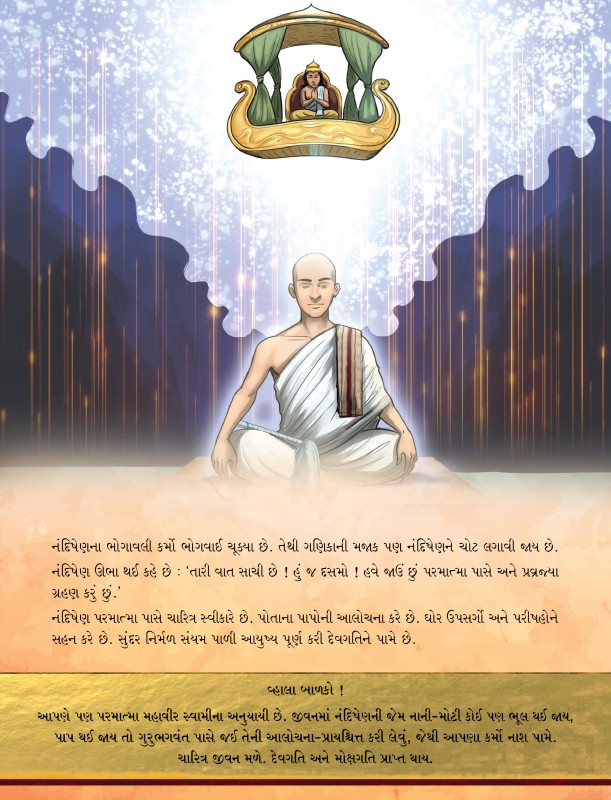 In this story of Muni Nandishen, the theory of Bhogavali Karma is explained nicely. The story also teaches why worldly pleasures are so dangerous and it must be avoided at all costs. It also teaches us what should be done if some sin is committed by us and how to destroy the bad karma.